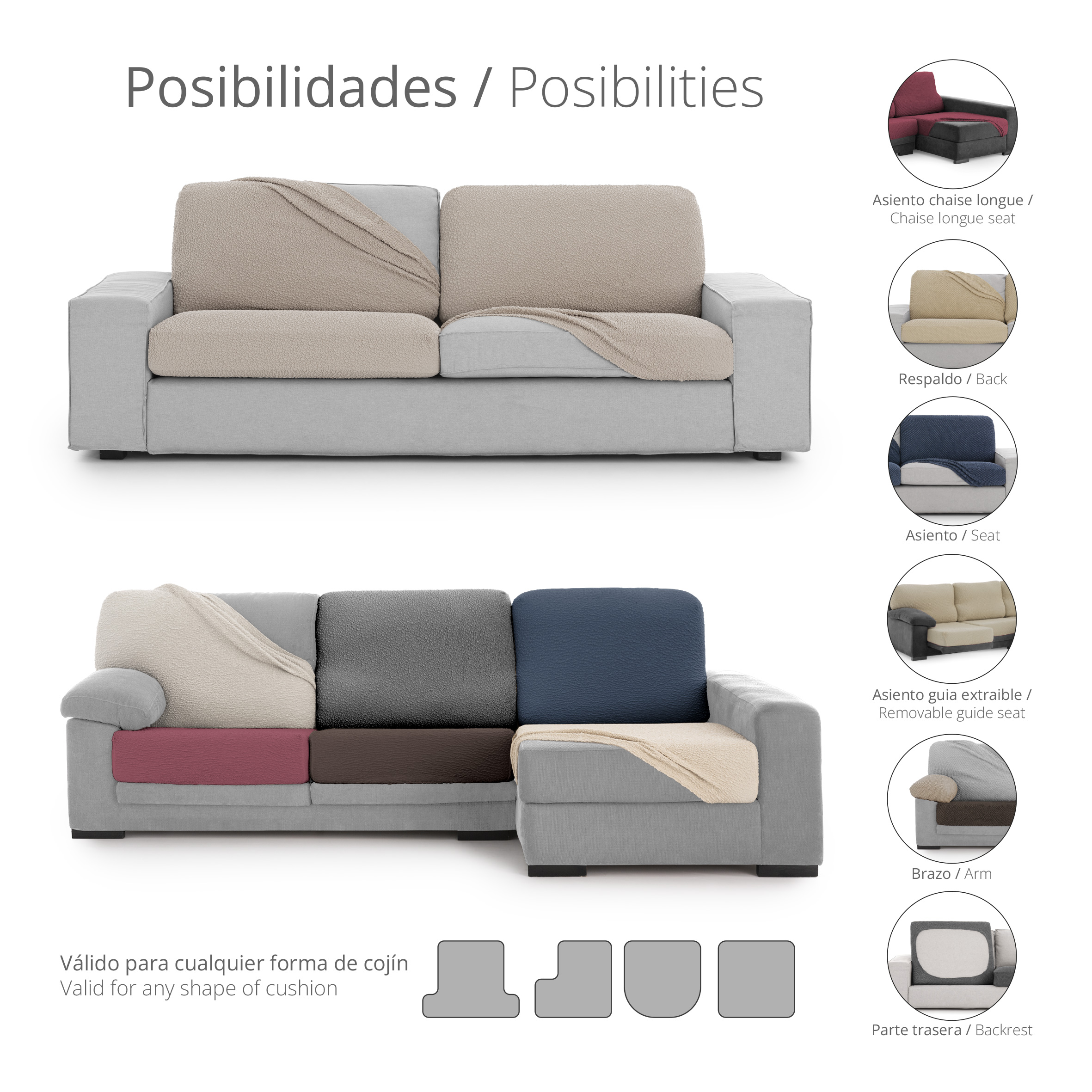 Funda para el asiento / respaldo del sofá confeccionado con tejido Bielástico. Se adapta a gran variedad de asientos, protegiéndolo del desgaste diario. El tejido bielástico aporta mayor adaptabilidad, ya que tiene elasticidad tanto en sentido horizontal, como vertical. Es transpirable y nos ayuda a renovar y proteger los asientos del sofá con poco presupuesto sin renunciar a la calidad. Fácil de poner y quitar.
